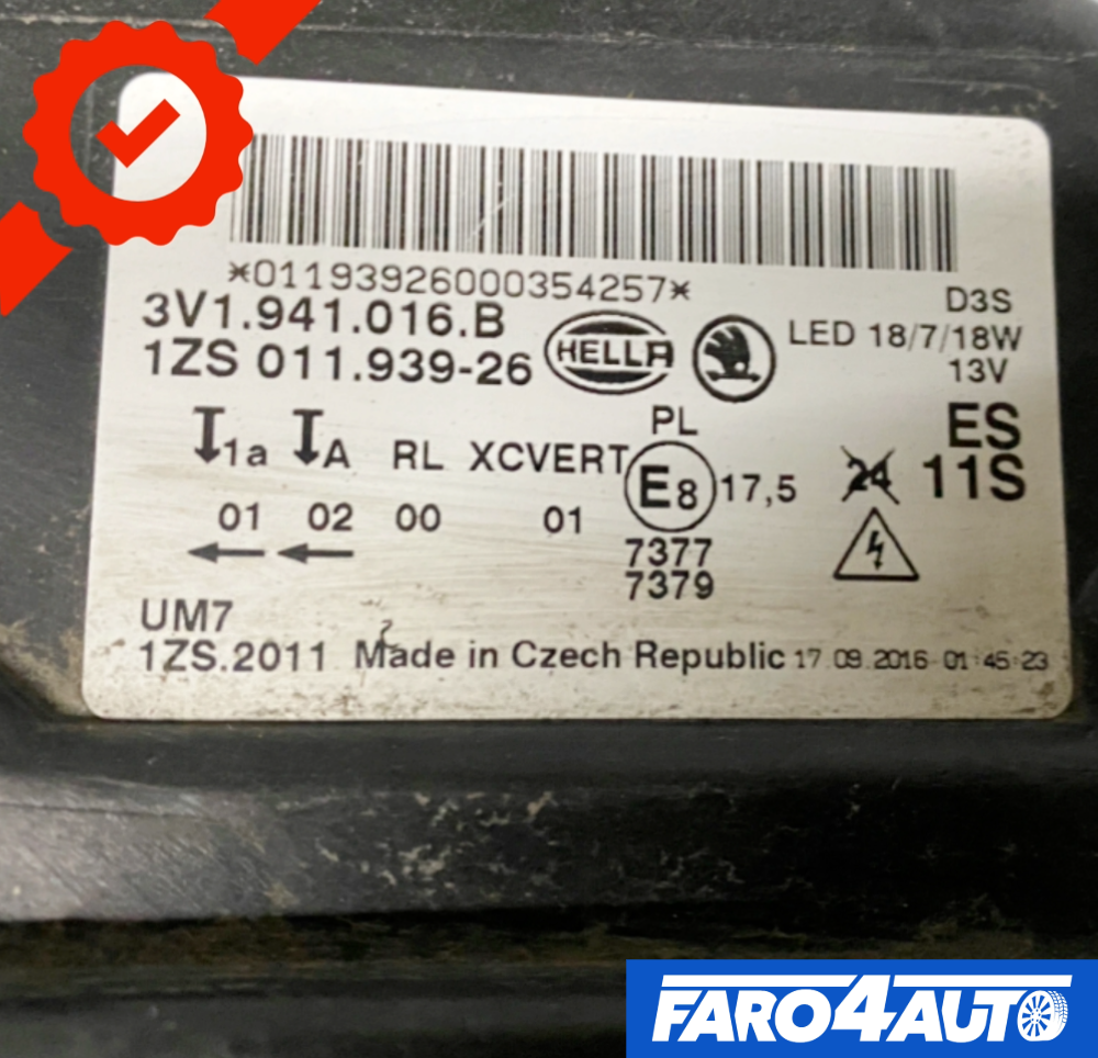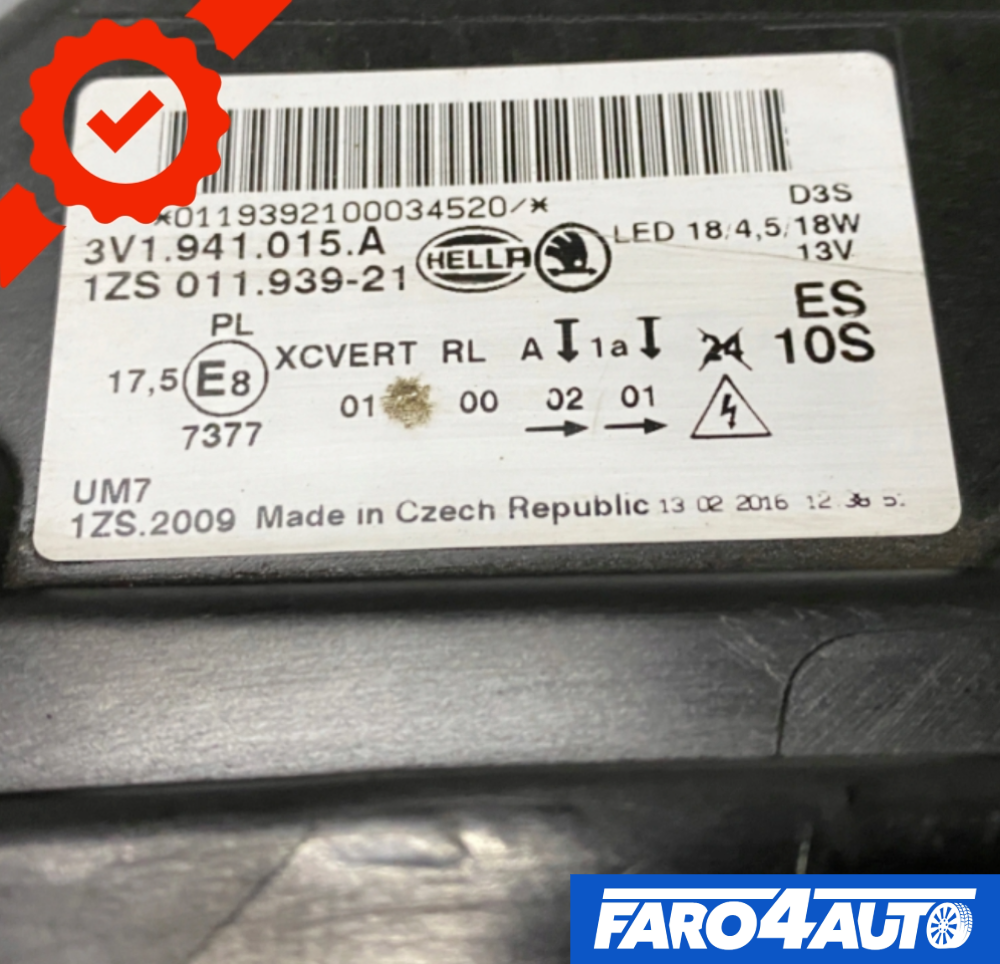 SKODA SUPERB 3 III, PHARES BI-XÉNON GAUCHE + DROIT